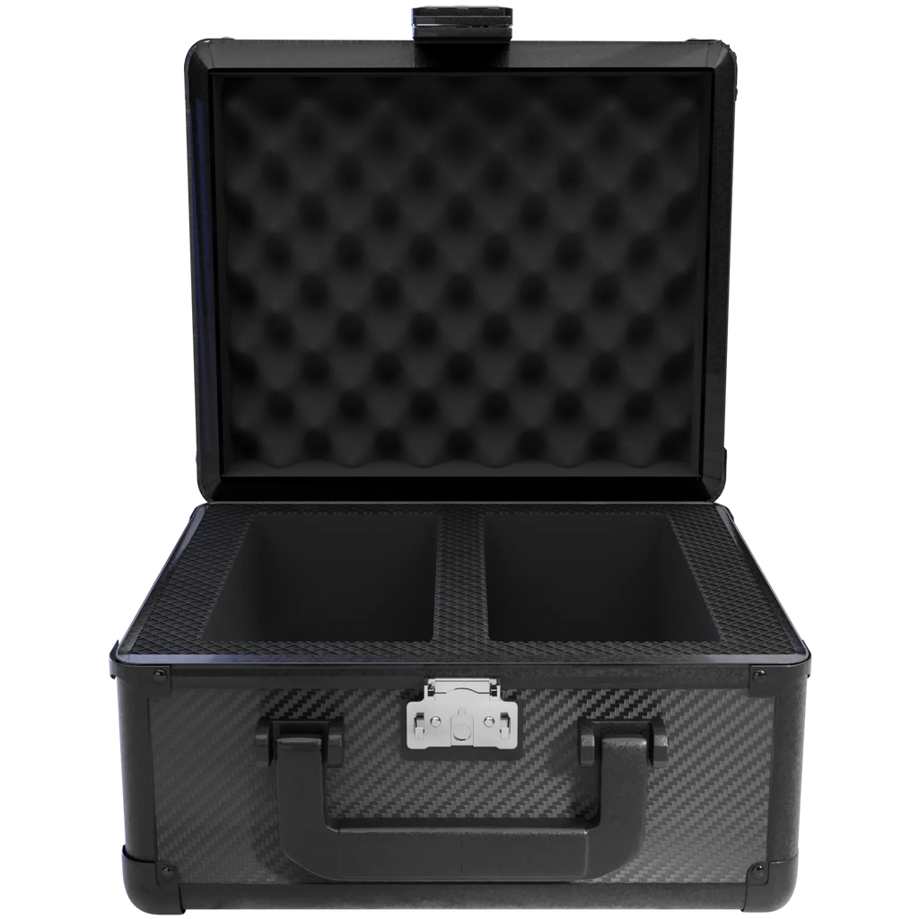 Holds up to 60 slabs, providing ample storage for large collections. Stylish Colors for a modern look featuring our Carbon Fiber and Cubed designs. TSA approved locking mechanisms for secure storage and travel. Precision high grade foam with a carbon fiber overlay. Durable construction for travel and storage.
