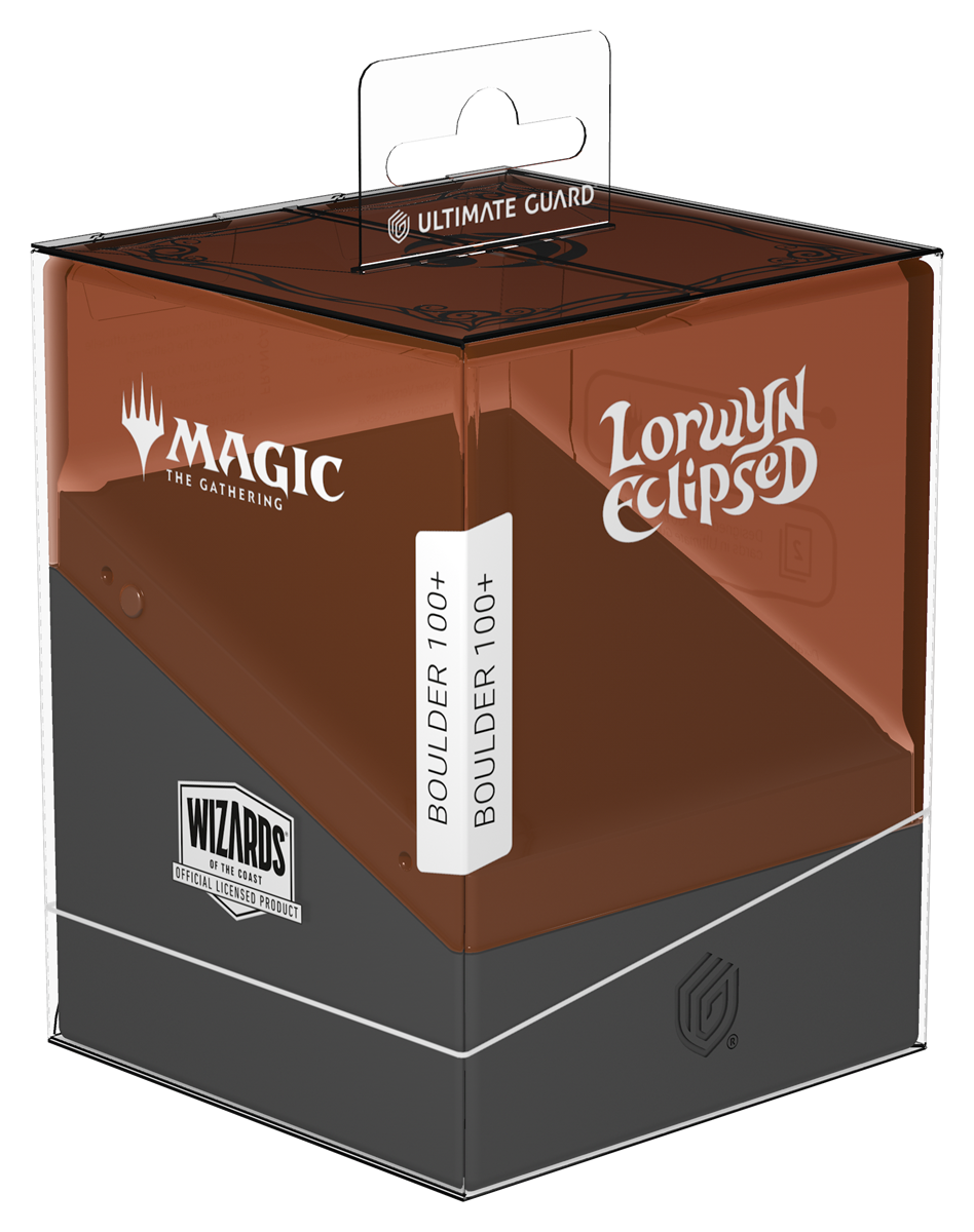 The Boulder 100+ is a durable and rigid deck box with a secure closure that can hold up to 100 double-sleeved or 120 single-sleeved cards in Ultimate Guard Sleeves. Both the completely transparent top of the Boulder and the solid bottom part are printed with officially licensed art from Magic: The Gathering’s upcoming set "Lorwyn Eclipsed".
